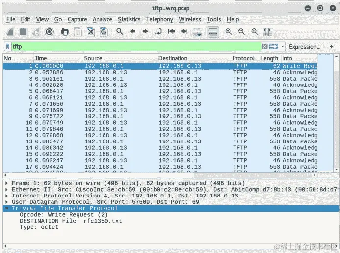 窃听是最严重的 VoIP 攻击之一。它让攻击者接管您的隐私,包括您的通话。有许多窃听技术;例如,攻击者可以嗅探 TFTP 配置文件的网络,而这些文件包含密码。以下截图描述了对 TFTP 捕获的分析: