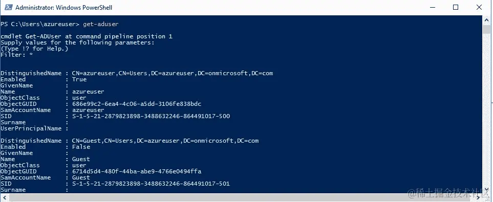 get-aduser用于获取指定用户,如下所示: