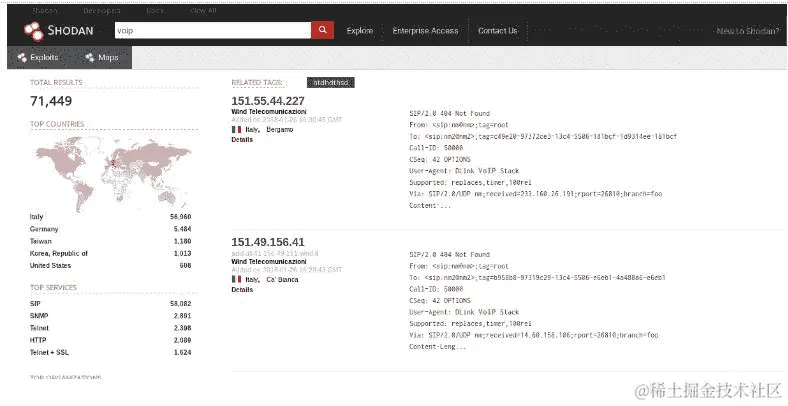 你可以使用 Shodan.io 搜索引擎找到连接的 VoIP 设备: