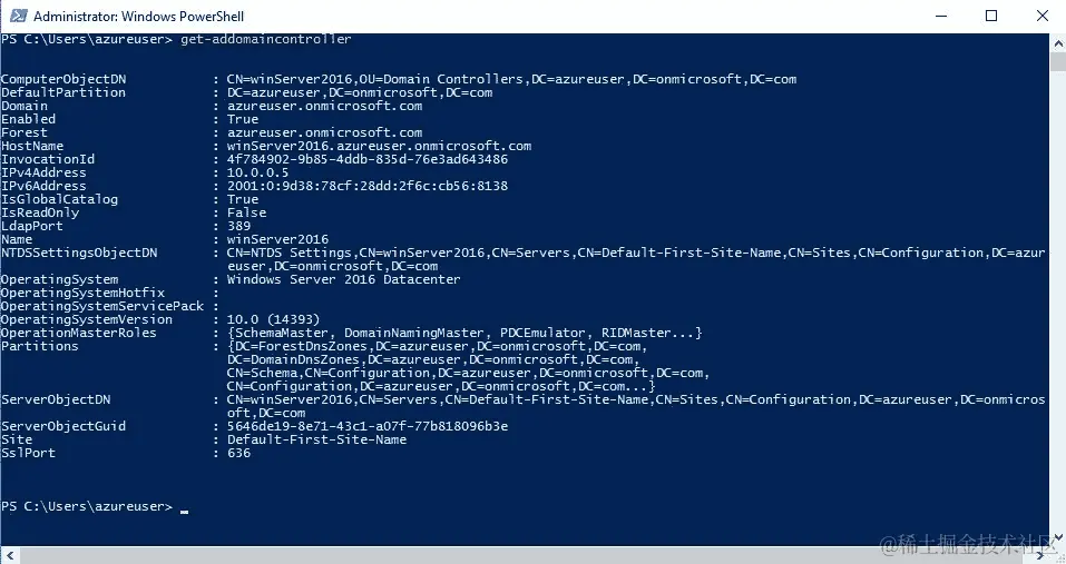 get-domaincontroller:列出域控制器,如图所示: