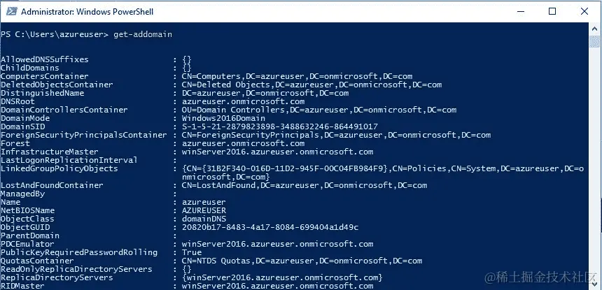 要检查域,您可以使用**Get-ADDomain**,如下所示: