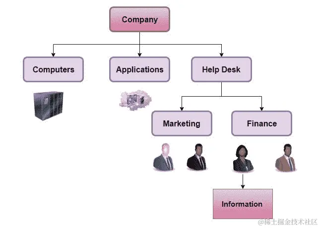 目录是一本按字母顺序或主题排序的列出个人或组织的书,包括姓名、地址和电子邮件等详细信息。换句话说,目录包含存储和结构化的对象,以便轻松访问和操作这些对象。在小规模组织中,如果您需要一个文件,您需要知道文件存储在哪个服务器上以及其完整路径。这在小型环境中有效,但在中大型公司中并不实用。因此,使用这种方式定位文件可能是一个真正的挑战。问题并不止于此,因为我们知道每个用户可能有许多访问凭据,如密码,这使得管理所有凭据变得困难,如果数量很大的话。这就是为什么需要一个目录服务来定位资源而不知道完整位置的原因。以下图表说明了一个分层目录的示例。
