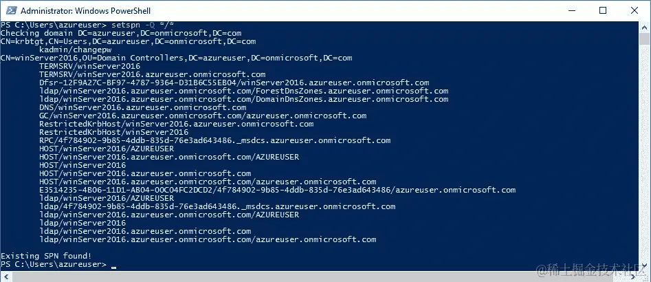 如果要使用 Microsoft 内置工具检查所有 SPN 服务,只需输入setspn -Q */*。