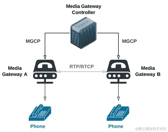媒体网关控制协议(MGCP)是由思科开发的协议。MGCP 的目标是处理信号和会话管理。它是媒体网关控制器和媒体网关之间的通信机制。因此,控制是集中的。换句话说,控制器与许多媒体网关进行通信。控制器还监督终端并在其区域注册新终端。H.248 也像 H.323 一样,是一个基于 ITU 的协议。它是 MGCP 的增强版本。正如你在图表中看到的,MGCP 是一种主从协议: