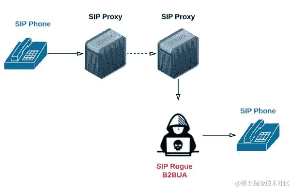 - Rogue SIP B2BUA:在这种攻击技术中,攻击者模仿 SIP B2BUA: