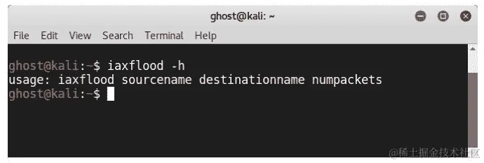 打开 Kali 终端,输入iaxflood <Source IP> <Destination IP> <Number of packets>: