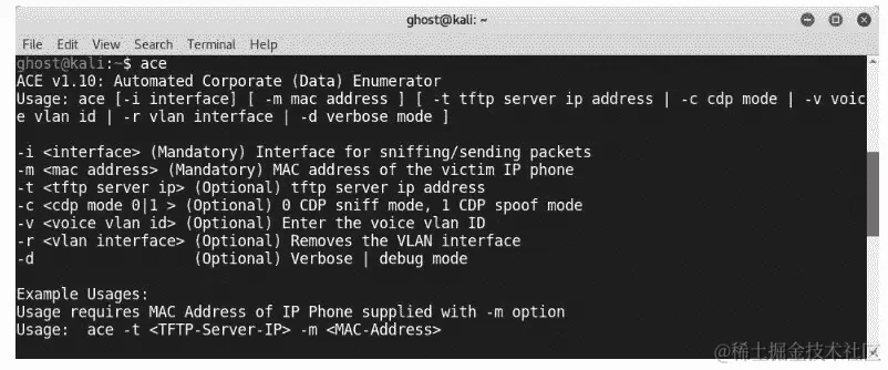 自动企业枚举器(ACE)是 Kali Linux 中的另一个内置枚举工具: