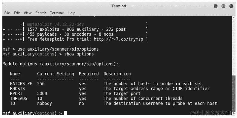 如果您是 Metasploit 爱好者,可以尝试许多其他 SIP 模块。通过输入msfconsole打开 Metasploit 控制台,并使用search SIP:搜索 SIP 模块。