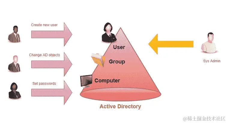 微软活动目录提供了一个用于管理和解决这些挑战的目录服务。它还具有许多其他功能和能力。如今,活动目录在许多现代组织和机构中扮演着重要角色。沟通对于业务来说是一个关键的方面,而目录服务是一个明智的选择,因为它作为所有所需信息的单一容器点。活动目录基于客户端/服务器架构。以下图表显示了活动目录用户的一个示例。