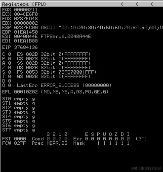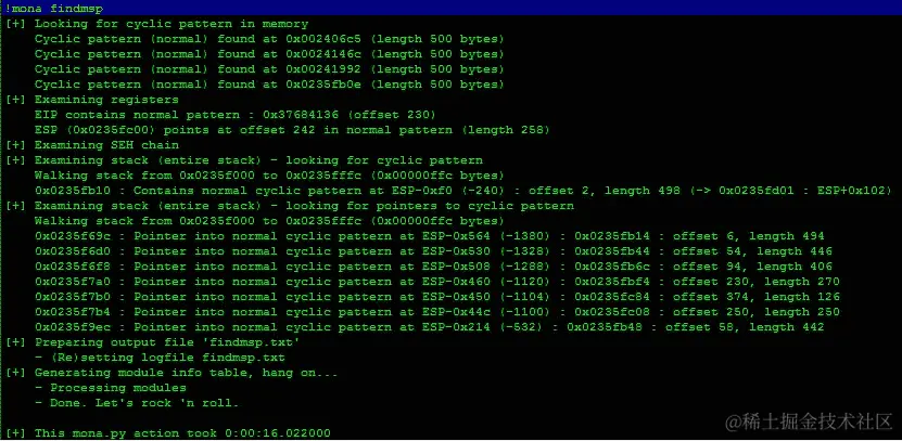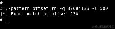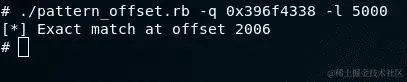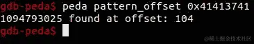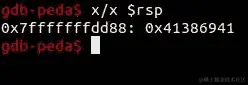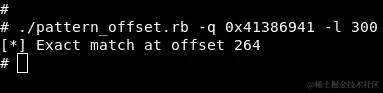 堆栈中的最后一个元素是0x41386941。您还可以使用x/wx $rsp来打印 RSP 寄存器内的完整字。现在我们需要在攻击机上使用pattern_offset.rb计算 RIP 寄存器的确切位置:
