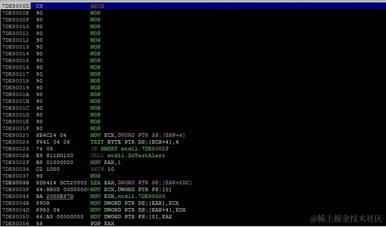 因为它甚至拒绝执行我们从栈中的 No Operation (nop),因为栈现在是不可执行的。