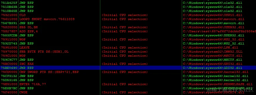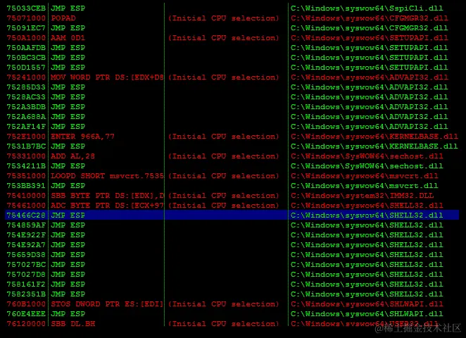 然后执行应该只是在所有 NOP 指令上传递,直到它碰到 Shellcode,然后开始执行它: