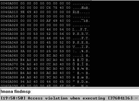 程序崩溃了,它抱怨内存位置 0x41414141,这是我们的 5000 个 A。在第二阶段,也就是控制 RIP,让我们创建一个长度为 5000 字节的模式。