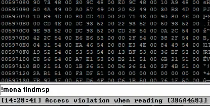 这就是我们的攻击应该是什么样子的。让我们尝试注入 execve /bin/sh shellcode(长度为 32)。现在我们需要在内存中找到包含 0x90 的任何地址: