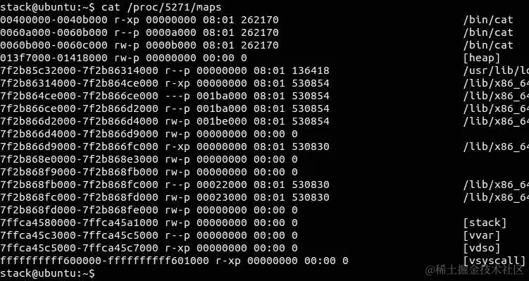 cat的 PID 是5271。现在,阅读它的内存布局: