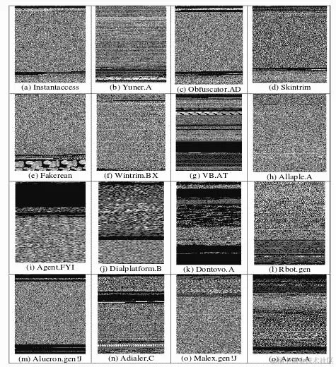 将恶意软件转换为灰度图像后,您可以获得以下恶意软件表示,以便以后用于为机器学习模型提供数据: