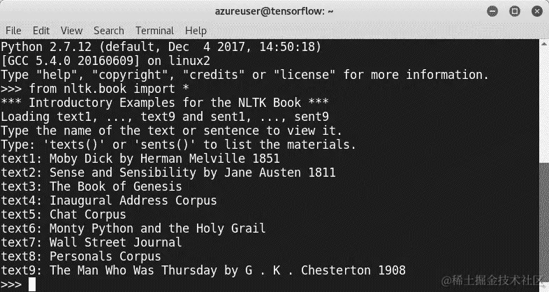 CodeInText:指示文本中的代码字词、数据库表名、文件夹名、文件名、文件扩展名、路径名、虚拟 URL、用户输入和 Twitter 句柄。这是一个例子:“首先,使用python --version命令检查您的 Python 版本。”