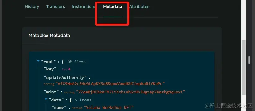 data.uri: 指向NFT的元数据地址,这一点我们在4.1小节有详细描述。data.name:NFT的名称。data.creator:NFT的铸造者。