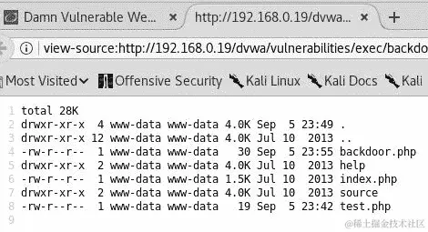 我们可以使用受损机器上的wget命令从攻击机器下载利用程序,该命令会在攻击机器的/var/www/html文件夹中查找文件: