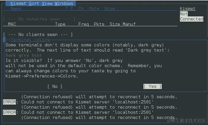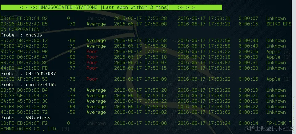 airmon-ng start <interface>来确定目标网络,然后启动airodump-ng <interface>来开始列出当前正在广播的所有网络: