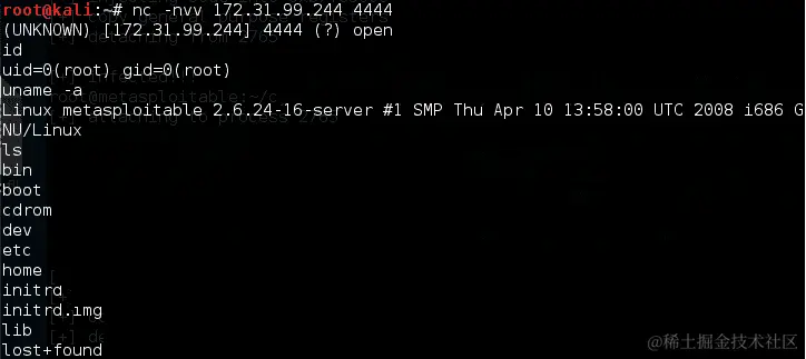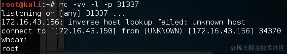 我们还需要通过发出以下命令在攻击机器上启动 Netcat 监听器: