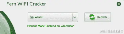 - 选择接口。单击“选择接口”下拉菜单。在这种情况下,我们将选择 wlan0。Fern 将自动将我们的接口置于监视模式: