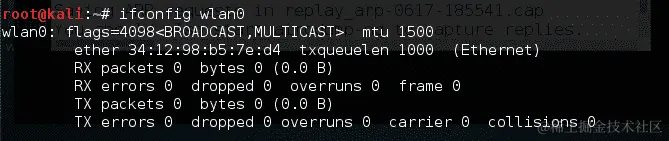 此外,如果我们运行ifconfig wlan0命令,我们可以看到我们伪造的 MAC 地址: