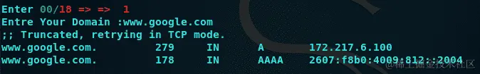要执行 DNS 查找,请输入1,然后输入域的名称,例如www.google.com: