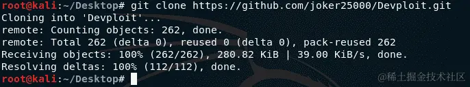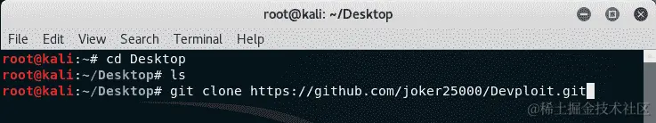 使用git clone命令将 Devploit 克隆到您的机器上,输入以下内容: