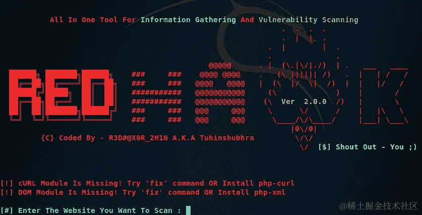 要启动 Red Hawk,请输入php rhawk.php并按Enter。如果成功,应显示以下屏幕:
