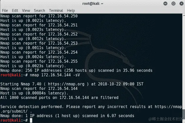 查找目标网络中哪台机器是可用的。如果目标机器不可用,我们将不会继续对该机器进行渗透测试,并将移动到下一台机器。