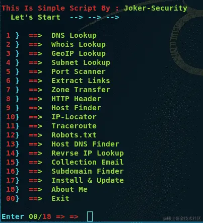 Devploit 3.6 被列为一个信息收集工具,由 Joker25000 开发,可在github.com/joker25000/Devploit上获得。