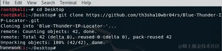 通过键入git clone https://github.com/th3sha10wbr04rs/Blue-Thunder-IP-Locator-.git从 GitHub 克隆 Blue-Thunder-IP-Locator: