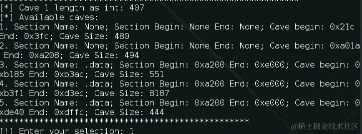 接下来,我们选择要用于注入有效载荷的洞穴: