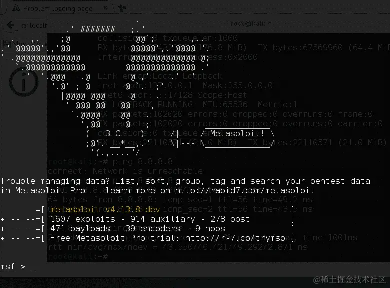 - 让我们启动 Metasploit 控制台,输入