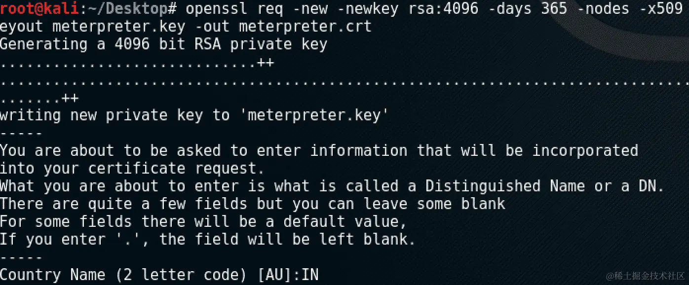 -keyout meterpreter.key -out meterpreter.crt