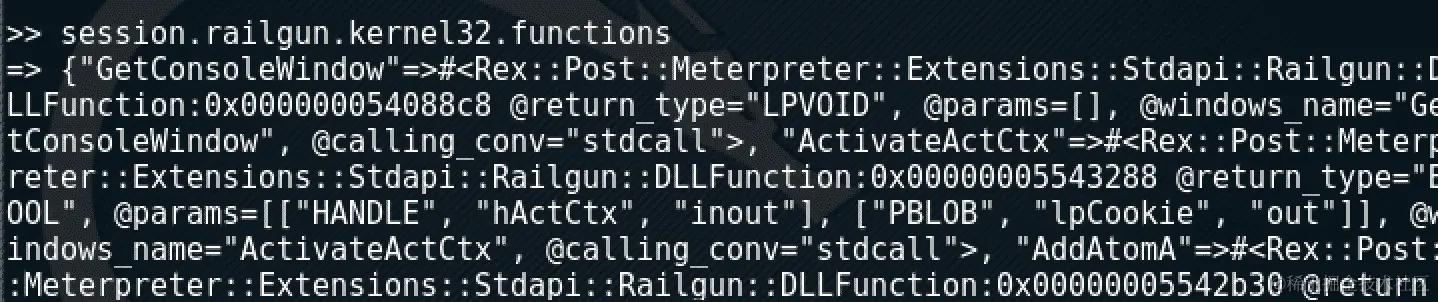 Railgun 允许我们执行 Metasploit 无法执行的许多任务,例如按键等。使用它,我们可以使用 Windows API 调用执行我们需要的所有操作,以获得更好的后期利用: