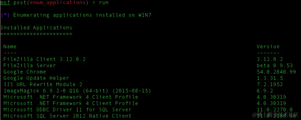 use post/windows/gather/enum_applications