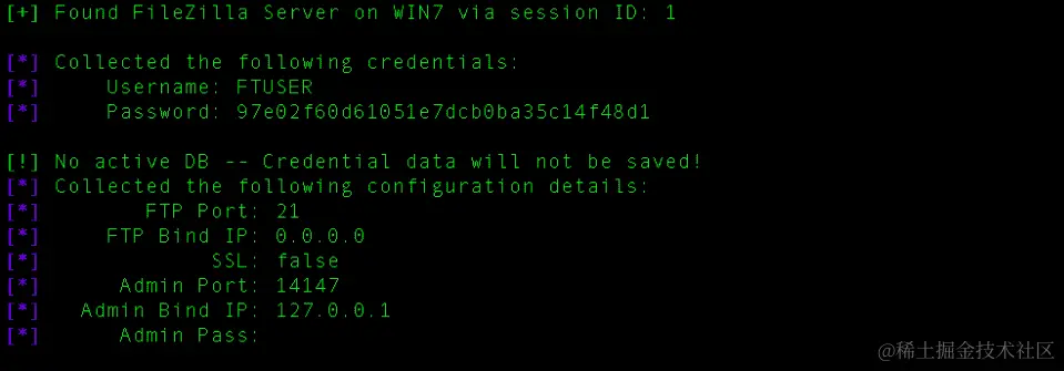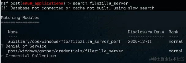 现在我们将尝试收集安装在机器上的 FileZilla 服务器(可用于传输文件的 FTP 服务器)的存储配置和凭据。我们将使用该模块: