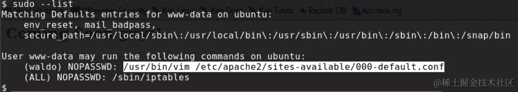 为了尝试获取管理员权限,我们输入以下命令: