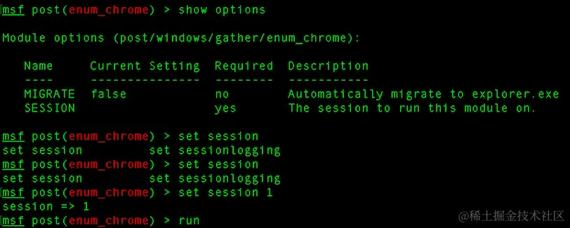 我们将使用post/windows/gather/enum_chrome。