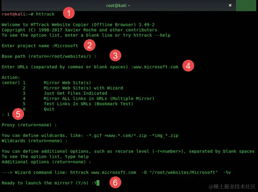httrack命令以调用交互式向导。 -