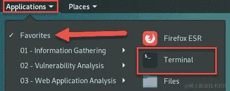 - 在您的 Kali Linux 机器上打开终端并执行以下命令: