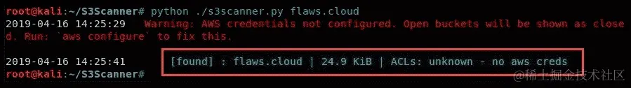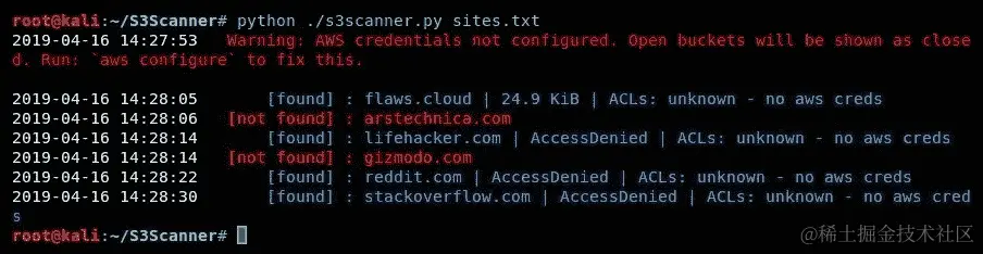 以下截图显示了使用 S3Scanner 来检查