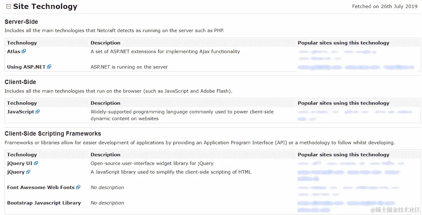 - 再向下滚动一点,直到看到Site Technology。该部分将告诉您 Netcraft 能够在目标 Web 服务器上识别的技术: