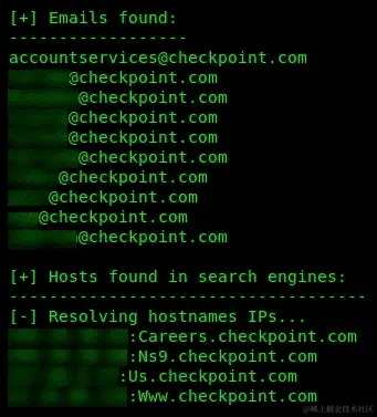 - 域的信息将显示在终端上。获得的信息可以被渗透测试人员利用,用于对目标组织进行各种类型的攻击。